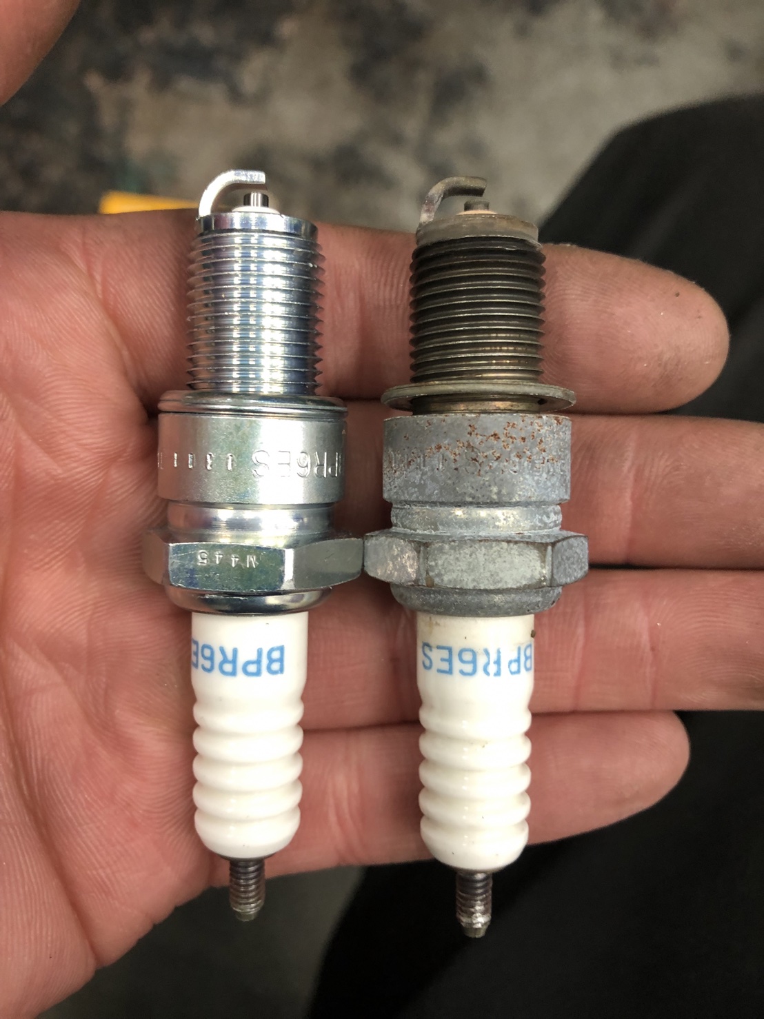 ③ プラグ点検(火花が弱いだけで冬は顕著に不調へ)